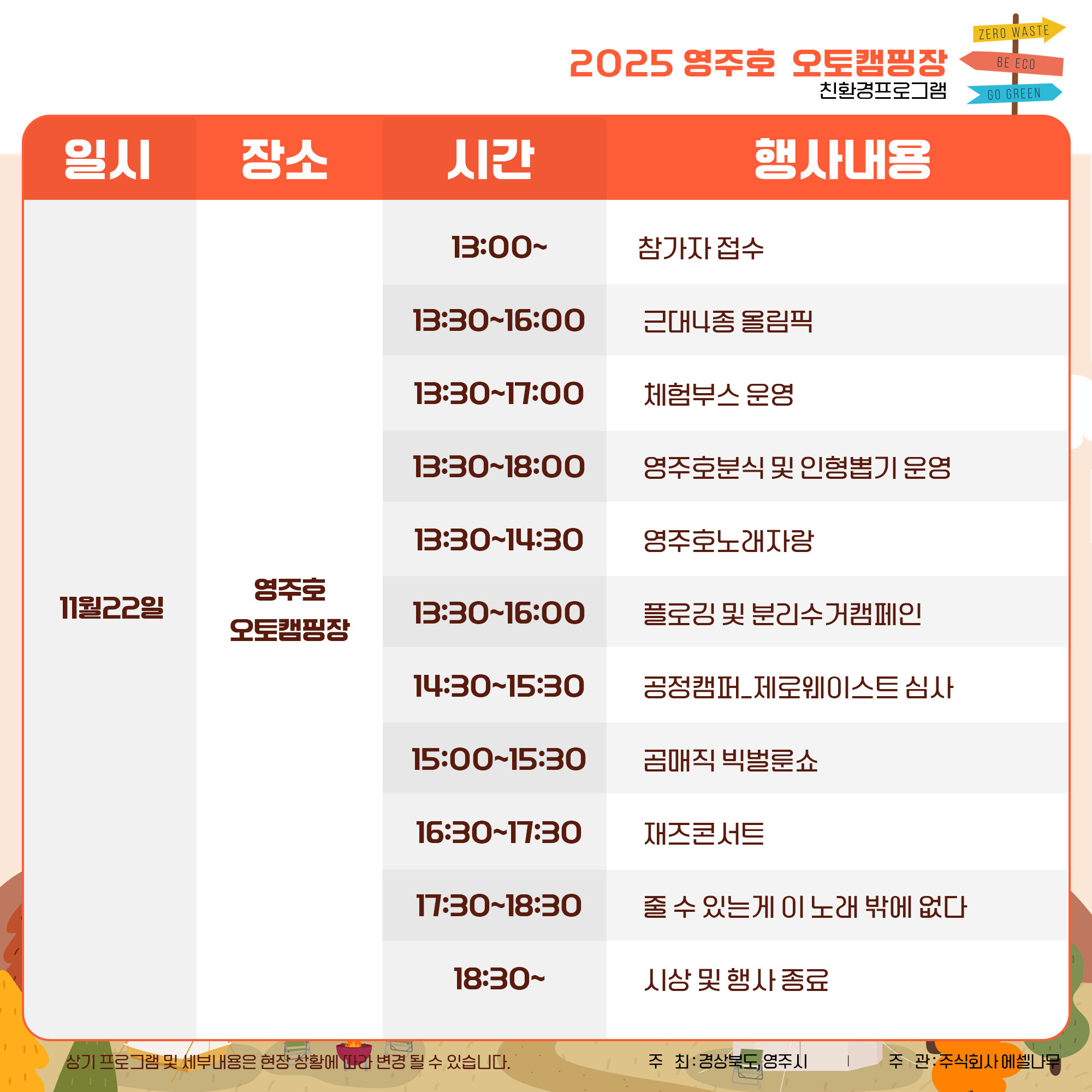 [안내] 2025 영주호오토캠핑장 친환경 프로그램 행사 안내 (11월 22일 토)